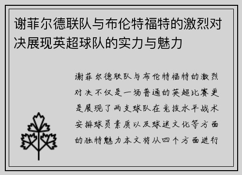 在辛堡与赫根的激烈对决中,两支球队将为观众呈现一场精彩纷呈的比赛。本文将从四个方面解析这场对决,包括两队的历史交锋、当前状态分析、战术布局及赛前预测展望。首先,回顾两队过往的对抗记录,可以发现辛堡和赫根之间的竞争历来十分激烈,胜负往往难以预料。其次,通过分析两队近期表现,可以看出他们在联赛中的状态变...