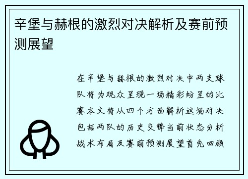 辛堡与赫根的激烈对决解析及赛前预测展望